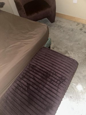 I love this item! It's so nice and looks high end. The color is a deep dark rich purple. The beach is completely assembled and just need the legs to be screwed on.