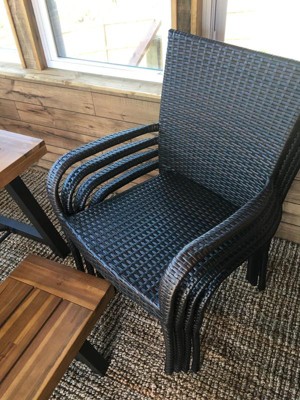 Salons 6pc Acacia & Wicker Dining Set - Teak/Brown - Christopher Knight Home: Weather-Resistant, Stackable Chairs, Galvanized Steel Hardware