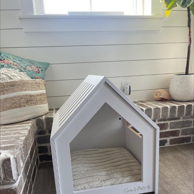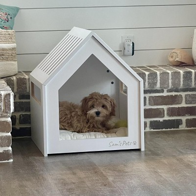 Perfect indoor dog house, our Poochon loves her house. We did have some difficulty assembling, not the easiest to put together.. but seems to be well made and fits in with home furnishings. I did contact the company directly for assembly help because the paper instructions were not clear… they were extremely helpful and sent me step by step videos thru texting, which helped so much. Excellent customer service Sam’s Pets thank you!