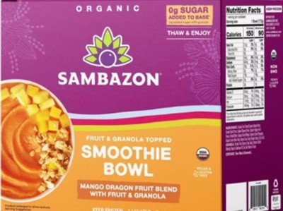Sambazon Frozen Mango Dragon Fruit Bowl with Fruit & Granola Toppings - 6.1oz