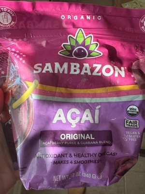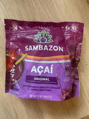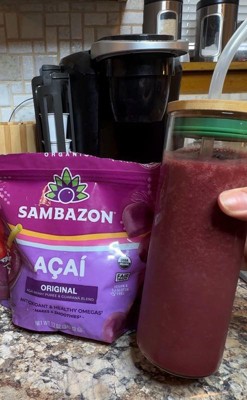 [This review was collected as part of a promotion.] Sambazon Original Açaí makes perfect on the go smoothies that provides energy and healthy benefits . I love the unique flavor of the smoothie and prefer to have one first thing in the morning to start my day .