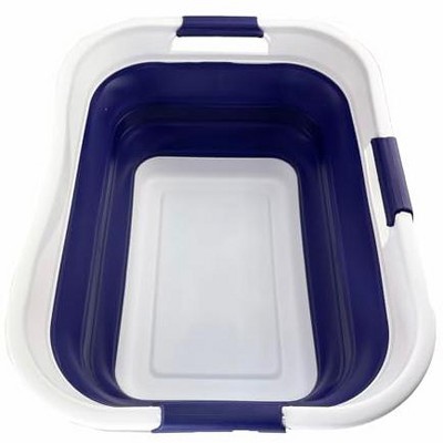 Details: **Collapsible TPE/PP Oval Tub **Brand: SAMMART **Material: TPE & PP **Expanded size: 21.2 x 16.1 x 10.2 (h) inches **Collapsed size: 21.2 x 16.1 x 3 (h) inches