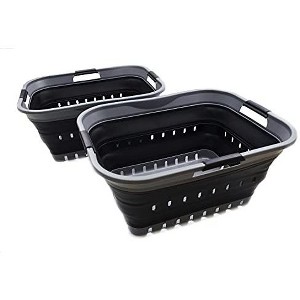 - BPA Free. Comfort grip handles for easy carry. User friendly by simply pop-up to open when using and collapses to flat for space saving