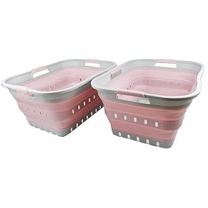 SAMMART 42L (11 gallons) Collapsible Plastic Laundry Basket Set of 2, Grey/Pale Pink