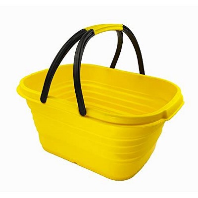 Details: **Collapsible TPE/PP Basket with Handle **Brand: SAMMART **Material: TPE & PP **Expanded size: 15 x 11 x 5.3(h) inches **Collapsed size: 15 x 11 x 2.4(h) inches **Capacity: 8L (2.1 Glallon)