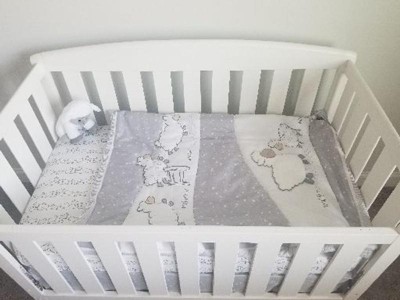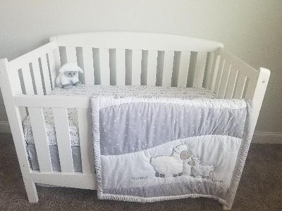 This bedding set is everything we imagined! The neutral colors and adorable sheep on the design fit perfect with any nursery. We love how it included a bed skirt, fitted sheet, comforter, and stuffed animal, good deal! Good quality of bedding.
