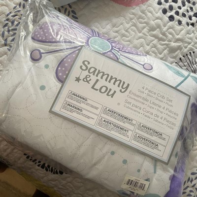 Your little one will be dreaming of butterflies and flowers with the Butterfly Meadow collection by Sammy and Lou. A butterfly leads a spray of flowers that are highlighted with a swirl pattern, dot print and vine print in a lovely color palette of purple, aqua and light green. The nursery quilt is a great 2-in-1 option and can be used as a blanket or a playmat for tummy time. Butterfly Meadow is made from high quality soft breathable cozy materials and gentle fabrics for baby's comfort. Hassle-free easy care machine washable.