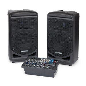 - Samson Expedition XP800 800W Portable PA System: All-in-one sound system that offers excellent audio quality with a quick and easy setup. Providing 800W of power, the XP800 features a lightweight, 8-channel powered mixer and two 8-inch speakers