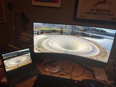 [This review was collected as part of a promotion.] Primarily used for gaming but as a day trader I found that the nice tight curve actually helps me spot trades quickly by being to see the entire screen (with 2 or sometimes even 3 chart windows) without too much eye movement. Compared to a wider flat monitor or 2 separate monitors, the difference is astronomical. That may be all in my head but I can’t argue with results. Now for the unfortunate news, a few feet directly over my monitor was a shelf with, evidently, too much of a load on it. It came down with a vengeance one night while I slept, knocked the monitor to the floor, obviously cracking the screen in the process. I couldn’t remove a star for that as I have yet to find a monitor that would handle such a situation without damage. Currently budgeting a save fund for a new one.