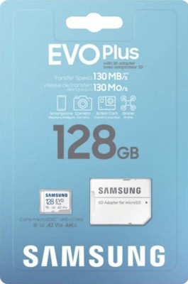 Samsung EVO Plus MicroSD 128GB, 130MBs Memory Card with Adapter