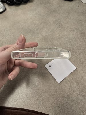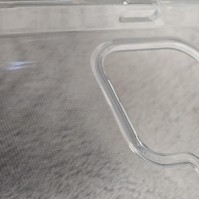 A: The phone case has a sleek and clear design, offering protection while maintaining the phone's original look.