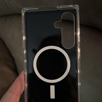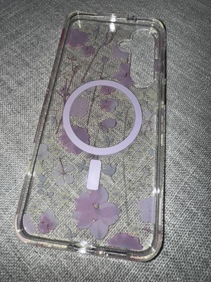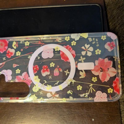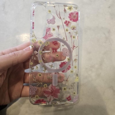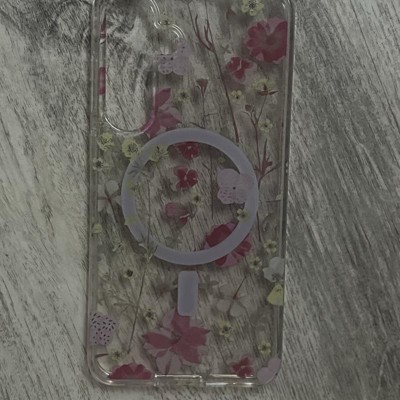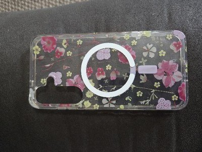 [This review was collected as part of a promotion.] I purchased this cell phone case in store. This plastic case has a beautiful floral design but the plastic is clear and see through, so I can still see my phone through it. The case is easy to put on and take off of my Samsung Galaxy S25+. There is a large opening in the back for the camera. This case is sturdy and protects my phone from scratches and cracks if dropped. I like the mag safe feature so I can charge without pesky wires. A decent price for a nice case! I received an incentive to write this review.