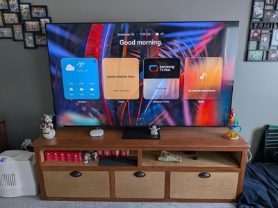 [This review was collected as part of a promotion.] I am a Samsung fan, the 85-inch Neo QLED is the 5th Samsung TV and our crown jewel. If you’re on the fence about the size, don’t be—it turns your living room into a literal private theater. The first thing that blew me away was the sheer clarity. Even with older movies that aren't natively 4K, the AI upscaling does a phenomenal job of sharpening the image without making it look "fake" or over-processed. The brightness is where this TV really wins. Our living room has massive windows, and our old set used to be unwatchable during the day due to reflections. This screen handles glare like a champ; the colors stay vibrant and the blacks stay deep even in high noon sun. Speaking of blacks, the contrast is incredible. Watching sci-fi or dark thrillers, there’s zero "blooming" around bright objects on dark backgrounds. It’s just crisp, inky, and immersive. The "Movie Mode" and "Filmmaker Mode" are game-changers for anyone who wants to see the film exactly how the director intended. Every detail, from skin textures to background landscapes, looks lifelike. Plus, the Tizen interface is fast and makes switching between apps seamless. It’s a massive footprint, but the slim design makes it look like a piece of art on the wall rather than a bulky appliance. If you want that "wow" factor every time you turn on the TV, this is it. Best purchase I've made in years!