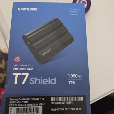With 2TB of storage capacity, you can store large files, photos, videos, games, and backups with confidence. High-speed SSD performance allows for quick file transfers, making it ideal for moving large projects or accessing data on the go. Whether you’re working from a laptop, desktop, or compatible device, the T7 Shield helps keep your workflow smooth and efficient.