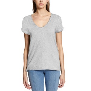 - WOMEN'S BASIC TEE: This basic t-shirt by Sanctuary Clothing features a modern twist with its cold shoulder design. Crafted from a blend of 55% cotton and 45% rayon, the heathered fabric gives a laid-back yet fashionable appeal.