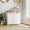 Not only a hub of culinary creativity but also a sanctuary of cleanliness and hygiene, this Dual-Door Trash Can Cabinet is the ultimate solution to your waste management needs, helping to maintain a tidy look without sacrificing practicality. Open the doors to reveal an inclined structure that adeptly conceals your trash bins, while keeping odors at bay when closed. The odor-eliminating system kicks in, ensuring your kitchen remains a fragrant-free zone. Use this modern trash bin cabinet to create a more hygienic and enjoyable kitchen experience.