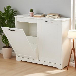 Sandinrayli 20 Gallon Tilt Out Wood Trash Can Cabinet with Deodorizing Function Laundry Hamper, White