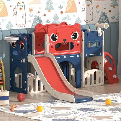 Sandinrayli 8-In-1 Toddler Slide and Climber Playset, Kids Slide Playground with Storage, Gray