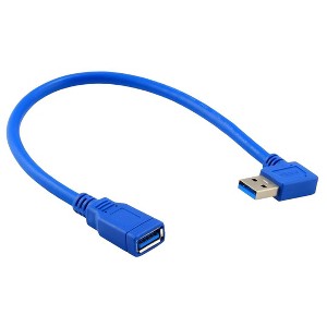 USB 3.0 Right Angle Male to USB 3.0 Female Extension Cable 1 FT Super Speed FAST - Extend Your USB Devices with Right Angle Connector and SuperSpeed Data Transfer. This USB 3.0 right angle male to USB 3.0 female extension cable allows you to extend your USB devices by 1 foot with a right angle connector and SuperSpeed data transfer. The right angle connector is perfect for connecting devices in tight spaces, and the SuperSpeed data transfer ensures that your files are transferred quickly and efficiently. Benefits: Extend your USB devices by 1 foot. Right angle connector for easy use in tight spaces. SuperSpeed data transfer. Compatible with all USB 3.0 devices