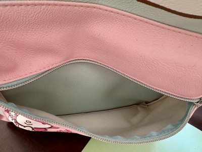 I am very impressed with the Hello Kitty and Friends backpack. The colors are my favorites. I am really loving a mint green and with the pastel pink it’s a nice match. The flash of color with the straps is also a nice bright yellow. The straps are adjustable and it maybe nothing, but I like that the adjuster is clear so it doesn’t distract from the color scheme. The material of the bag is a leather like material. I feel if you spill something in the bag it can be easy wiped away with minimal staining. The zippers are a nice quality and don’t feel heavy opening and closing the bag. The front pocket has the same leathery material inside where the bigger part of the bag has a more fabric feel. I love that Hello Kitty is big and on top and My Melody and Kuromi are supporting her at the bottom. Those are my favorite Sanrio characters so the backpack completely spoke to me with them and the colors. This bag will hold up well, even in different kinda of weather. It’s a great quality all around and one that I will keep for a long time.