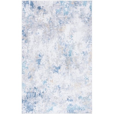 Santa Monica STM346 Machine Washable Skid-Resistant Power Loomed Indoor Accent Rug - Ivory/Blue - 3'x5' - Safavieh