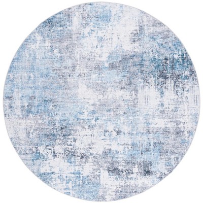 Santa Monica STM386 Machine Washable Skid-Resistant Power Loomed Indoor Area Rug - Ivory/Blue - 6' Round - Safavieh