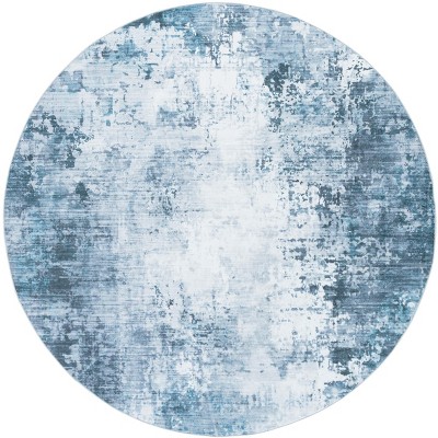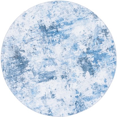 Santa Monica STM872 Machine Washable Skid-Resistant Power Loomed Indoor Area Rug - Ivory/Blue - 6' Round - Safavieh