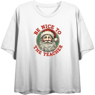 Santa’s Favorite Teacher Women's Crew Neck Short Sleeve Crop Tee