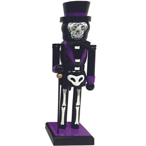 Dressed in his best outfit with matching top hat, this skeleton nutcracker carries a simple staff accented with a golden ball and is ready to help celebrate the holidays! Beautifully handcrafted from wood and hand painted, this wonderful 10" Bones Nutcracker is sure to provide many seasons of pleasure.
