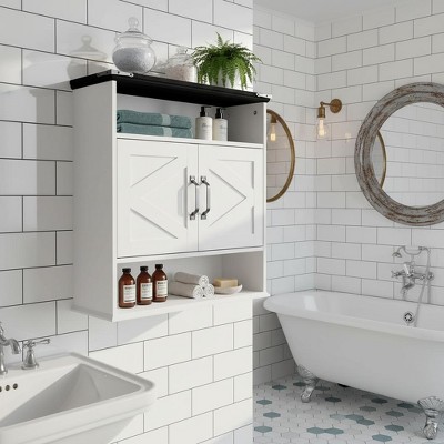 Sapphtopaz 23.62" Modern Wall Mounted Bathroom Cabinet with Open Shelf & Towel Rack,2-Tier Wall Cabinet with Fluted Glass Doors Storage Cabinet,Black