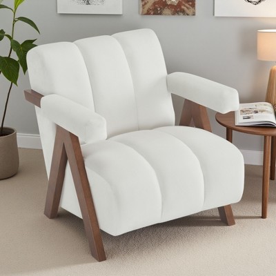 Sapphtopaz 24" Modern Accent Chair with Velvet Upholstered, Armless Comfy Chair with Metal Legs, Accent Chairs for Living Room, Bedroom, Beige