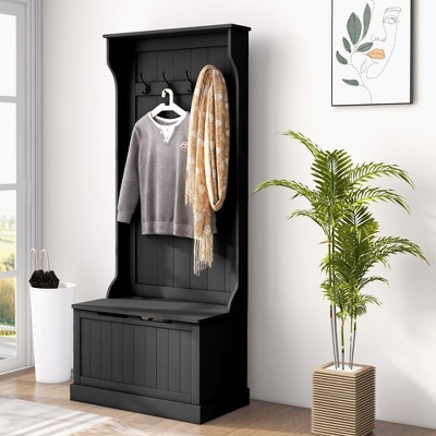 Sapphtopaz 28" 3-in-1 Entryway Hall Tree with Shoe Cabinet,Multi-Functional Coat Rack with 4 Hooks,Shoe Bench with Storage for Entryway,Hallway,Black
