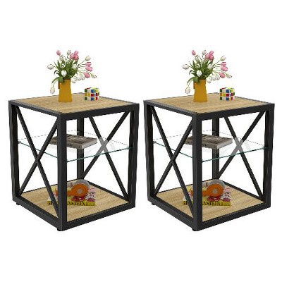 Product Name: Sapphtopaz 2PCS Modern End Table with Tempered Glass Top Square Nightstand with Storage Drawer X-Frame Side Table for Living Room,Bedroom,Natural