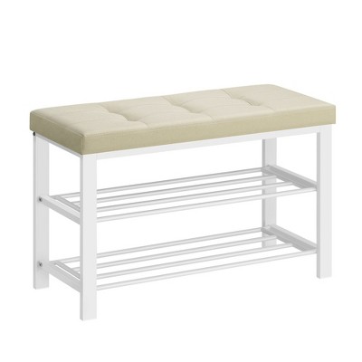 Sapphtopaz 40-Inch Accent Shoe Rack Bench with Lower Shelf & Removable Cushion, Modern Padded Shoe Organizer for Living Room Bedroom, Beige