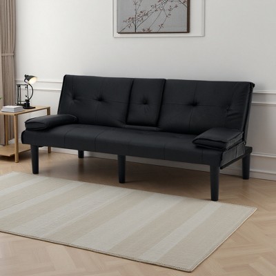 Sapphtopaz 63.8" Modern Futon Couch Sofa - Convertible Sofa Bed with Sturdy Frame & Soft Upholstery, Space-Saving Furniture for Living Room, Black
