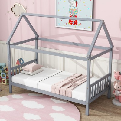 Sapphtopaz 79.5" Twin Platform Bed with Headboard and Storage Drawers Wood Bed Frames with Slats Support for Bedroom, No Box Spring Needed, Gray