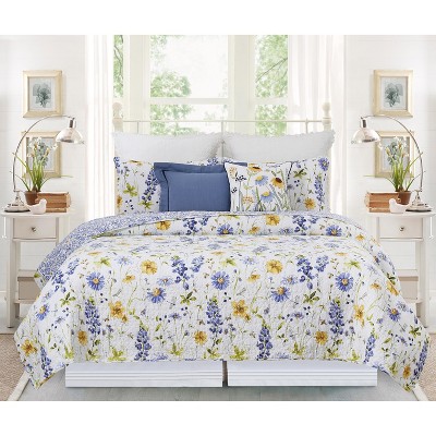 Sapphtopaz 8 Piece Bedding Comforter Sets Grid Quilted and Pieced Seafoam Pleated Design Reversible Quilt Set, Green