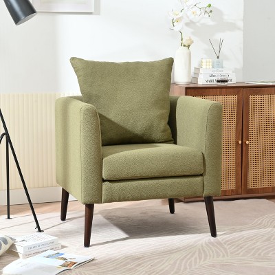Sapphtopaz Chenille Accent Chair Upholstered Chair for Bedroom with Pillow and Solid Wood Legs Modern Comfy Chair Accent Chairs for Living Room, Beige