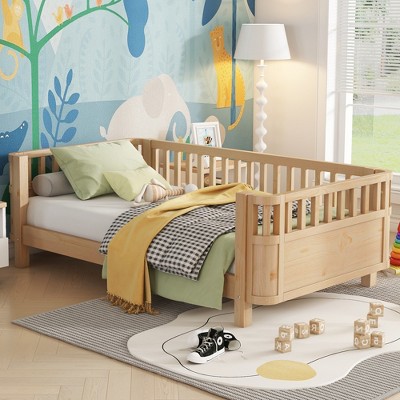 Sapphtopaz Twin Bed Frame Wood Low Profile Platform Bed, Bed with Rails for Girls and Boys, Bedroom Furniture, No Box Spring Needed, Natural