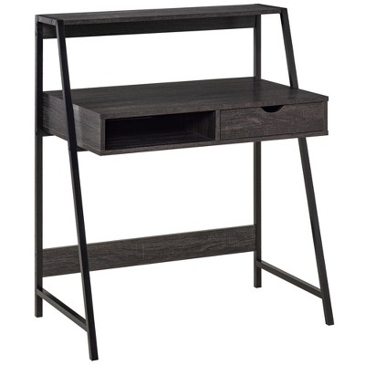 Sapphtopaz Desk with Open Shelves and 1 Drawer Wooden Top Office Desk with Bookshelf and Metal Sled Base Table for Bedroom, Study Room, Office, Black