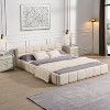 Product Name: Sapphtopaz Elegant Queen Size Low Bed Frame with Checker Headboard Upholstered Platform Bed with Slat Support for Bedroom, No Box Spring Needed, Beige