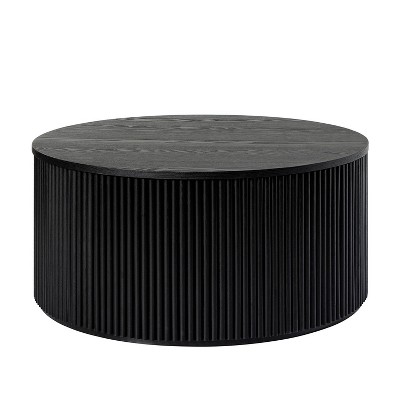 Sapphtopaz 31.49" Farmhouse Coffee Table with Fluted Handcraft Drum Wooden Coffee Table with Sturdy Base Modern Center Table for Living Room, Black