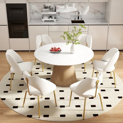Sapphtopaz French Style Wooden Dining Chairs Set of 2, Solid Wood Frame Accent Chairs, Linen Fabric Kitchen Chairs for Dining Room, Kitchen