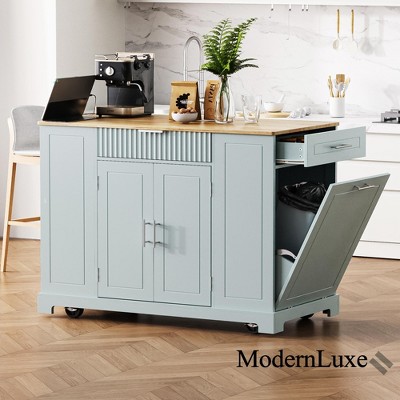 - Effortless Organization System: Designed for maximum storage efficiency, this island combines deep drawers, adjustable shelving, and specialized racks to keep all kitchen essentials within reach. The clever tilt-out cabinet maintains a clean aesthetic while providing practical waste management solutions
