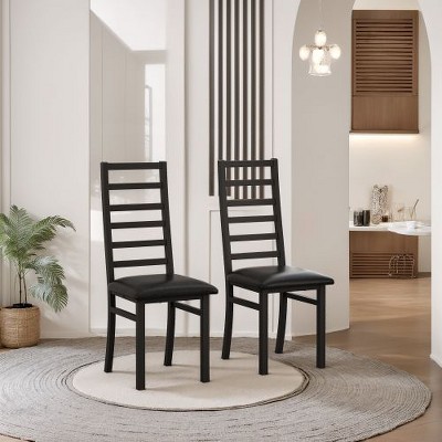 Sapphtopaz Metal Dining Chairs Set of 2 Armless PU Leather Upholstered Chair with Steel Legs and High Backrest Chairs for Dining Room, Kitchen, Black