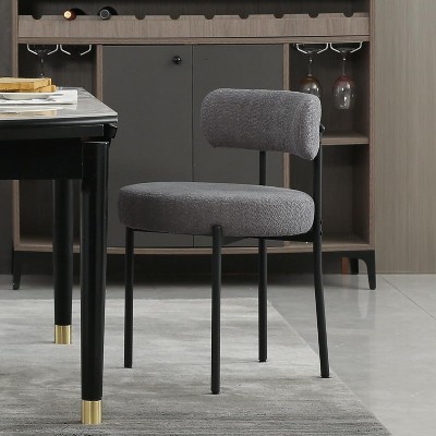 Sapphtopaz Mid-Century Upholstered Dining Chairs with Curved Backrest Set of 4, Teddy Kitchen Chairs with Black Metal Legs, Round Thickened Cushions