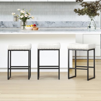 Sapphtopaz Modern Bar Stools Set with Nailhead Trim Upholstered Saddle Counter Stools with Wooden Frame Dining Chairs for Kitchen Island, Brown