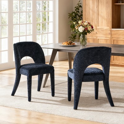 Sapphtopaz Modern Chenille Dining Chair Set of 2 with Hollowed-Out Backrest Thick Upholstered Living Room Chairs with Metal Frame for Dining Room,Blue