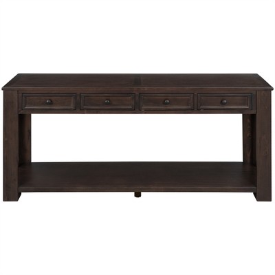 Sapphtopaz Modern Console Table with 4 Staggered Tiers Shelves Entryway Table with Circular Metal Frame TV Stands for Living Room, Hallway, Brown
