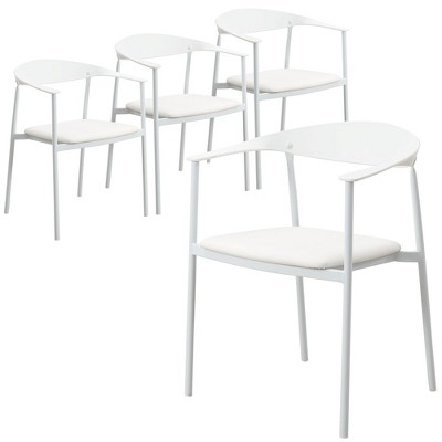 Sapphtopaz Modern Dining Chair with Curved Wraparound Open Backrest Upholstered Living Room Chairs Kitchen Chair with Metal Legs for Dining Room,White